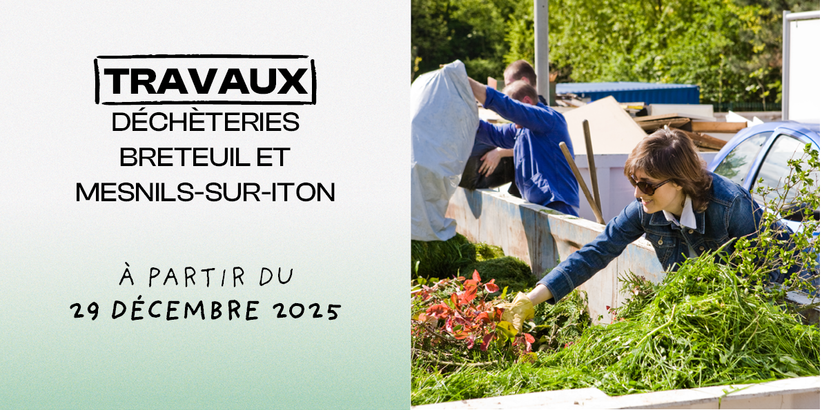 À partir du 29 décembre 2025, les déchèteries de Breteuil et Mesnils-sur-Iton seront fermées pour travaux.